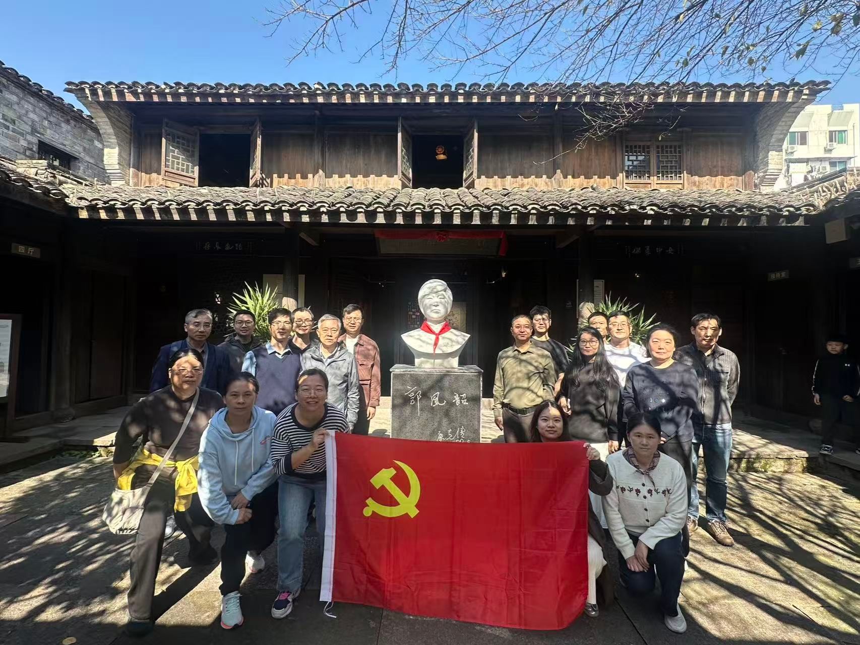 近日,吃瓜网站 党委组织教师党员赴台州临海郭凤韶烈士故居,开展“传承红梅风骨,铸就时代师魂”主题党日活动。穿过幽巷古道,走进郭凤韶烈士故居,庭院正中的烈士半身雕像首先映入眼帘。在纪念馆内,党员教师们参观了各类主题展厅,通过珍贵的历史图片、实物和家书,深入了解郭凤韶从普通爱国学生成长为坚定共产主义者的生命历程。
