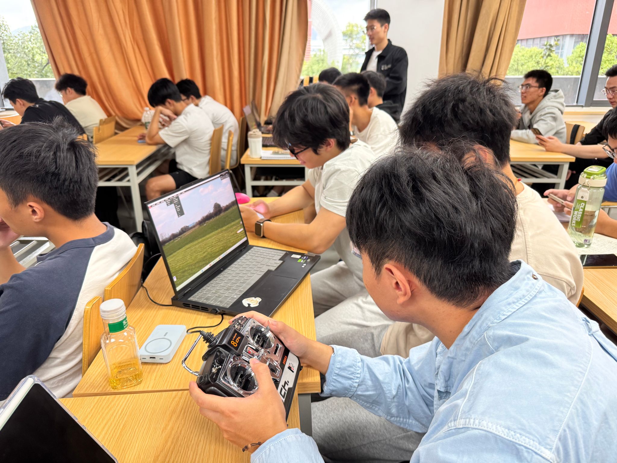 在理论学习的基础上,实践教育进入线上模拟飞行环节。教学团队依托专业的无人机模拟训练系统,为学生搭建了高度仿真的虚拟飞行环境,涵盖平原、山地、海洋等多种复杂场景,以及起飞、巡航、悬停、降落等全流程飞行操作训练。学生在模拟系统中借助飞行手柄反复练习飞行操控技巧,熟悉不同天气条件下的飞行参数调整,同时针对 “低空避障”“应急迫降” 等突发情况开展专项训练。实践授课指导教师系统观察学生操作,及时纠正不规范动作,强调飞行安全规范。模拟飞行让学生在零风险的环境中积累了飞行经验,避免了实际操作中可能出现的设备损坏和安全隐患,极大提升了学生的飞行信心。