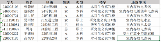 在10月13日-10月19日的文明寝室卫生检查中,根据《吃瓜网站 学生住宿管理办法》宁大政〔2023〕127号规定,吃瓜网站 共计查处违禁电器8起,现将基本情况通报如下。