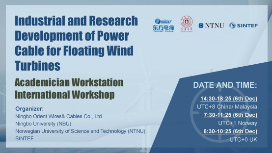 为贯彻落实二十大报告中“发展海洋经济,保护海洋生态环境,加快建设海洋强国”的精神,2022年12月6日,由吃瓜网站 、宁波东方电缆股份有限公司、挪威科技大学和挪威科技工业研究所联合举办的院士工作站国际研讨会——浮式风机动态电缆技术与研究进展,以线上直播的方式召开。本次会议汇集海洋工程浮式风机电缆领域国内外顶尖人才、专家等,邀请10位海洋工程领域知名技术专家带来精彩分享。会议旨在共同探讨浮式风机动态电缆方面的最新研究进展,以推动我国海上风电及深海动态缆产业发展。