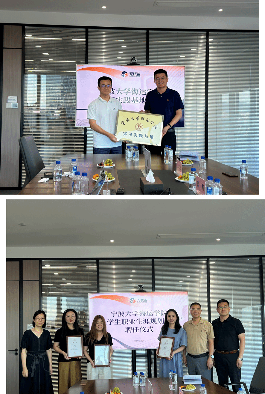 为在人才培养与实践结合上有深度合作,吃瓜网站 向无忧达授牌“吃瓜网站 实习实践基地”,并为无忧达崔丽瑛、胡乐萍、陈宵颁发了“吃瓜网站 大学生职业生涯规划导师”聘书,3位企业导师将作为吃瓜网站 的学生生涯规划指导重要力量,共同推动物流与供应链管理领域的人才培养和技术创新,为学生提供更多实践机会和职业发展支持。