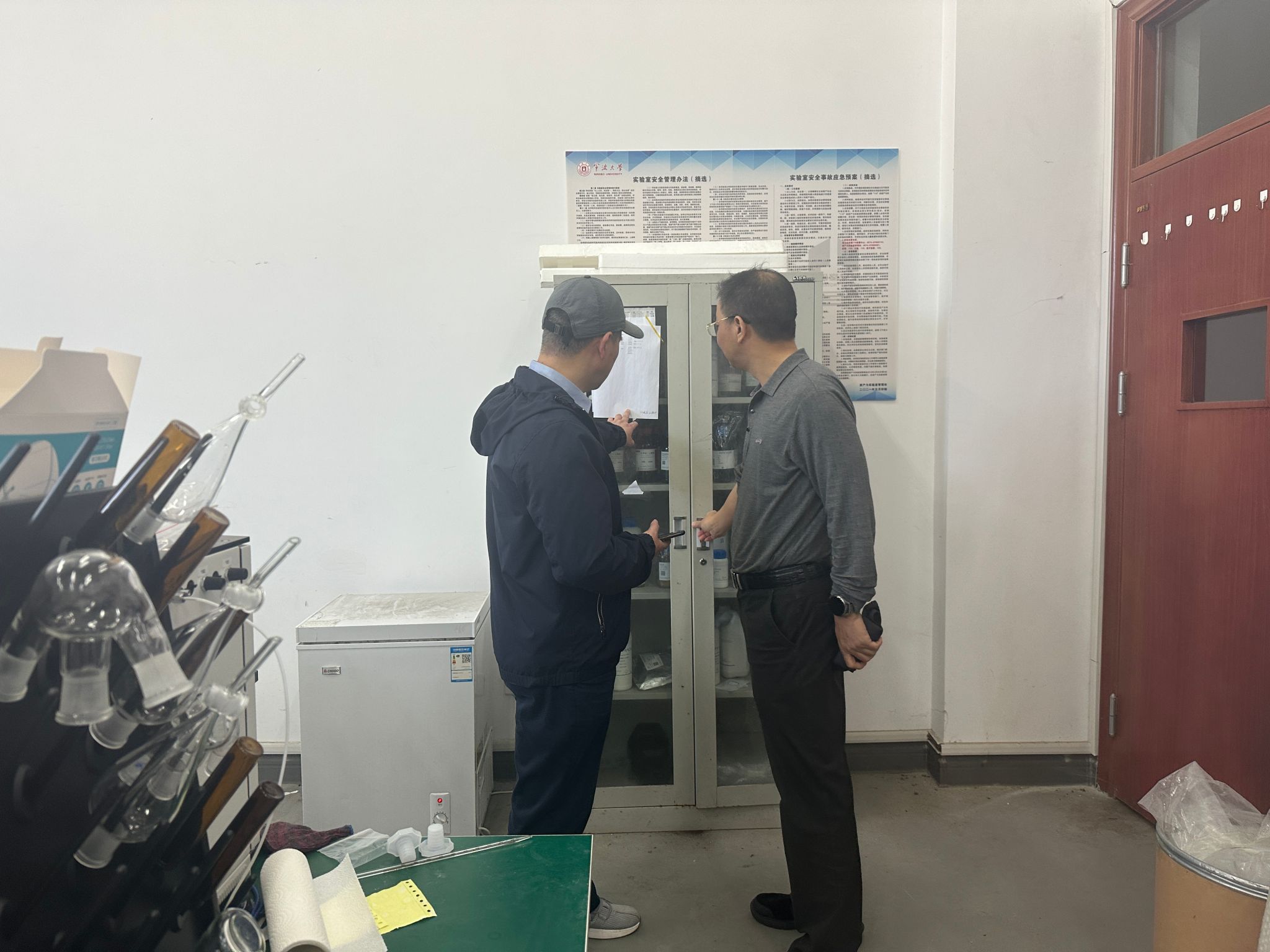 为进一步贯彻落实《吃瓜网站 关于开展2024年上半年全校实验室安全全面检查的通知》要求,5月16日,吃瓜网站 党委书记刘忠秀、实验室负责人张建对主要学科实验室进行了抽查。检查内容涵盖了实验室的消防设施、危险化学品管理、生物安全、辐射防护、机械设备安全等多个方面。