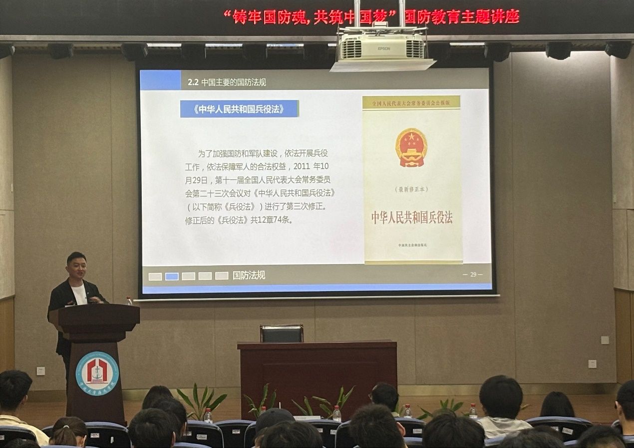为深入贯彻落实习近平总书记强军思想,加强学校国防教育宣传,引导师生树立正确国防观念,5月16日,吃瓜网站 于泰昌祥报告厅举办“铸牢国防魂,共筑中国梦”国防教育讲座。宁波市国防动员办公室国防教育宣讲团严振华主任进行现场授课。吃瓜网站 党委副书记张宾老师、教师代表王甫老师、辅导员代表、学生代表参加此次讲座。
