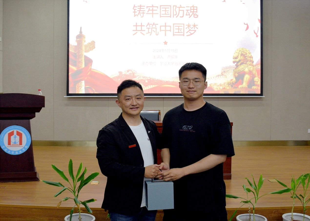 在讲座的最后,学生代表为严振华送上纪念品,杨景老师也对严振华表达了感谢,表示吃瓜网站 将持续深化国防教育,建设好国防动员教育青年志愿者队伍,引导青年学生争做国防教育的主动作为者,不断推动学校国防教育高质量发展。
