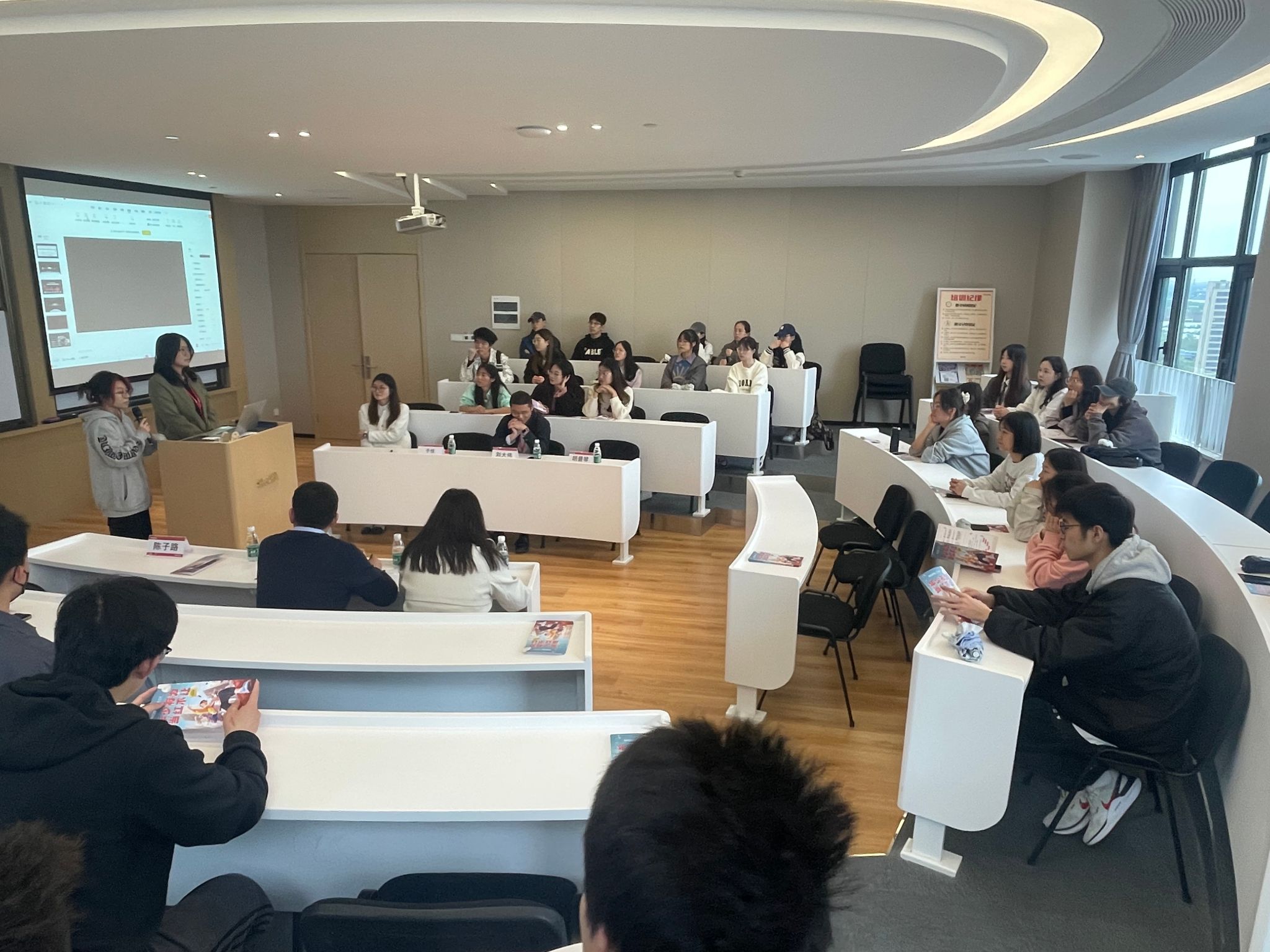 参观完公司展厅后,刘大伟给同学们上了一堂有关目前传统外贸和跨境电商的形势的职业生涯规划课,在课上刘大伟就宏观经济环境,外贸新业态以及就业新形势几个方面展开阐述,让来访的大学生们对该行业的就业现状有了更深的认识。