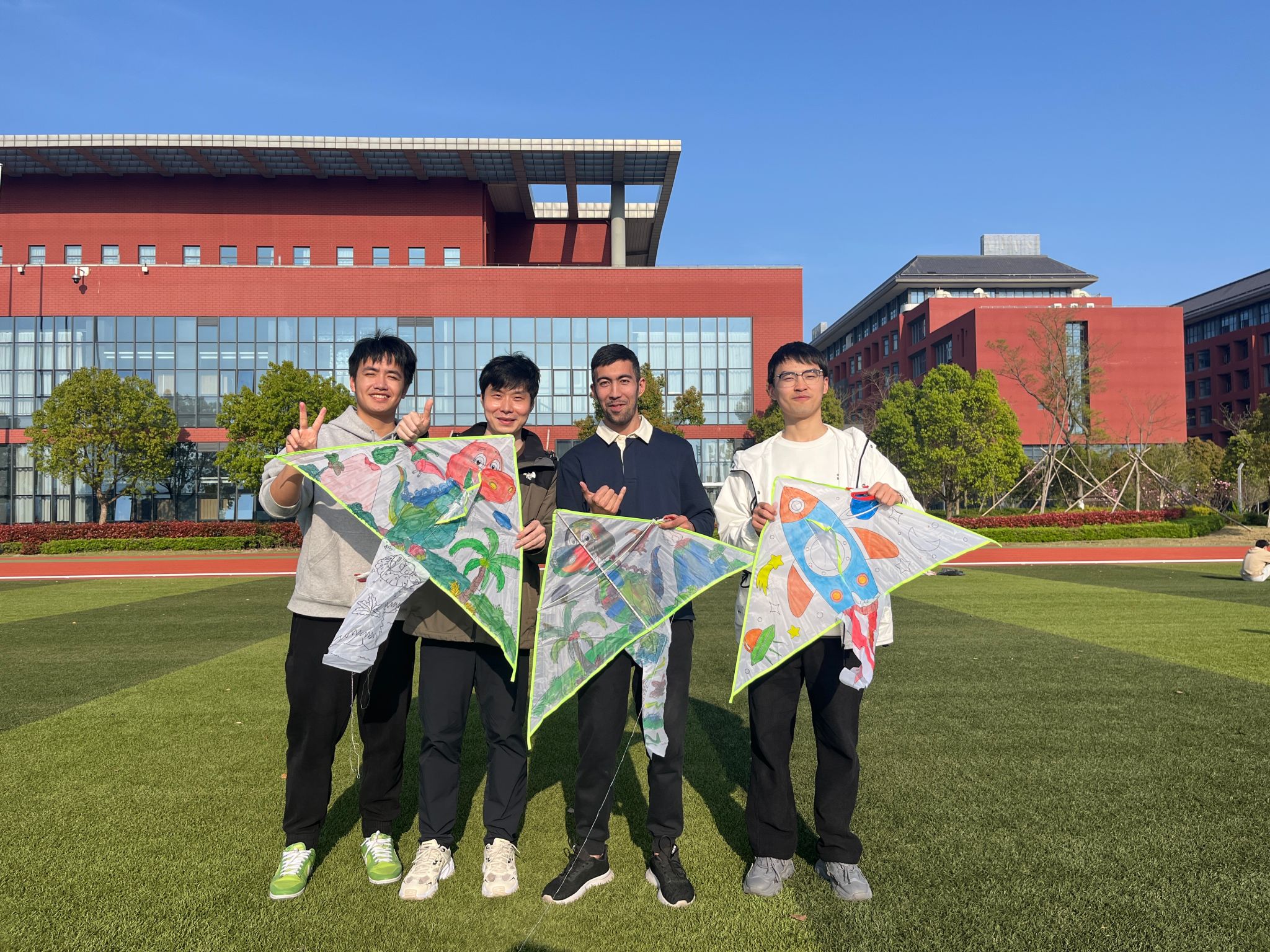 放飞过后,是分享与交流环节。大家围坐一起,分享放风筝过程中的感受和经验。21级船海专业学生许嘉辉表示,通过绘制风筝和放飞风筝,感受到了创作的乐趣和成就感; “我非常喜欢中国文化,放风筝非常有趣、漂亮” ,来自乌兹别克斯坦的22级港航专业留学生艾布朗分享到,他迫不及待想把这次的体验分享给家人和朋友。