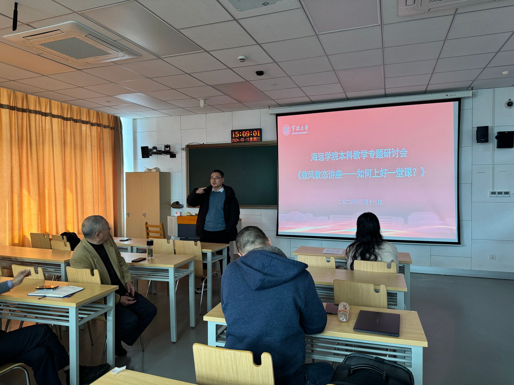 3月13日下午,为迎接教育部新一轮本科教育教学审核评估工作,吃瓜网站 在梅山校区综合教学楼203教室组织召开了《教风教态讲座——如何上好一堂课?》本科教学专题研讨会,对新一轮本科教育教学审核评估工作提前安排部署。会议由教学副院长叶晓飞主持,学院党政领导、全体任课教师参加会议。