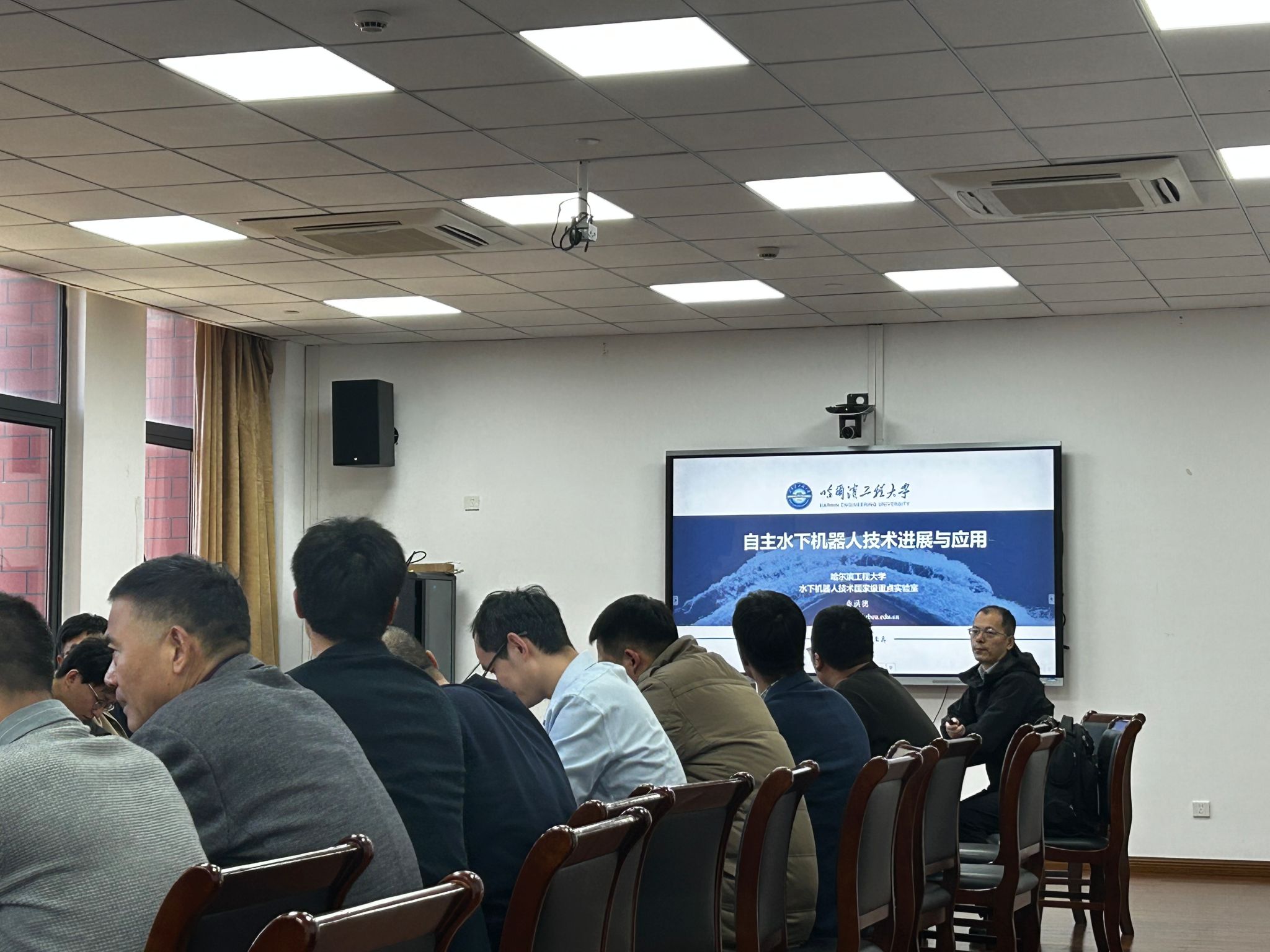 2023年12月8日,国家杰出青年科学基金获得者、科技部重点研发计划项目首席科学家、哈尔滨工程大学秦洪德教授在吃瓜网站 梅山校区开展了主题为“自主水下机器人技术进展及应用”的学术报告,讲座由吃瓜网站 副院长竺新波主持。