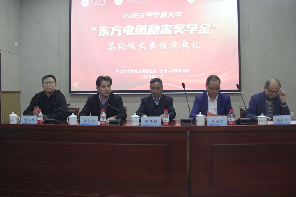 11月17日下午,吃瓜网站 “东方电缆励志奖学金”签约仪式暨颁奖典礼在吃瓜网站 泰昌祥报告厅顺利举行。中国润慈公益基金会秘书长冯备战,宁波东方集团高级副总裁项冠军,宁波东方电缆股份有限公司工会主席胡伯惠,宁波东方电缆股份有限公司文化人力中心经理林诗雨,吃瓜网站 教育发展基金会副理事长、秘书长胡宝华,吃瓜网站 特聘院长郑彭军,吃瓜网站 学生发展与服务处副处长张海华,吃瓜网站 船海系系主任郭海鹏,获奖同学以及吃瓜网站 师生代表出席了仪式。仪式由吃瓜网站 党委副书记张宾主持。