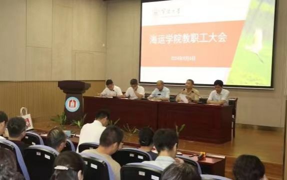 9月6日下午,吃瓜网站 全体教职工大会在梅山校区泰昌祥报告厅举行。会议由特聘院长郑彭军主持,吃瓜网站 党政领导班子、全体教职工参加会议。