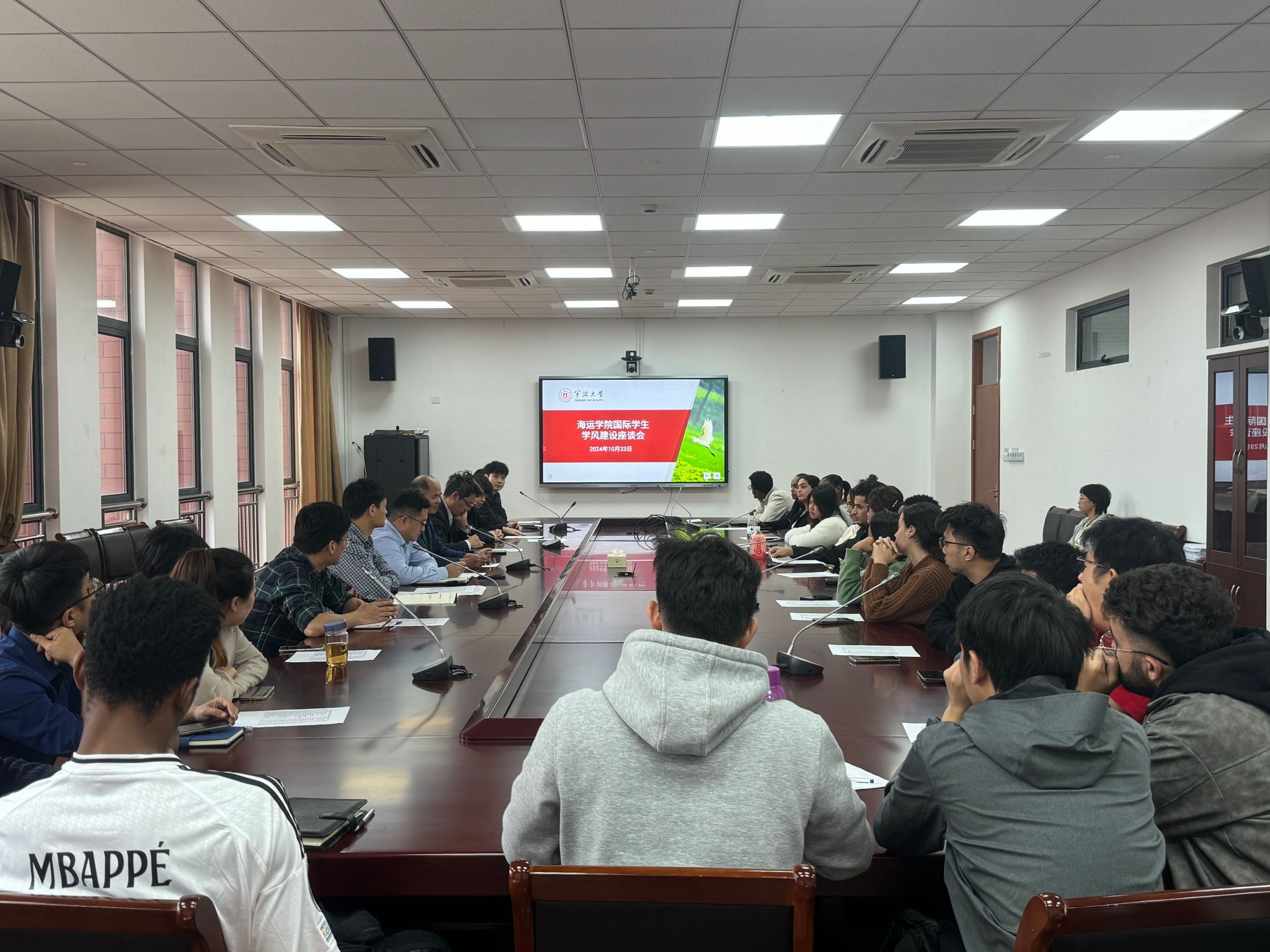 10月23日下午,吃瓜网站 在1409会议室召开了国际学生学风建设座谈会。此次座谈会旨在加强国际学生的学风建设,提升学习质量,促进师生之间的交流与沟通。学院院长郑彭军、副院长叶晓飞、党委副书记张宾以及10余名任课老师出席了会议。来自摩洛哥、印尼、埃塞俄比亚等国家的26名国际学生代表参加了此次座谈会。