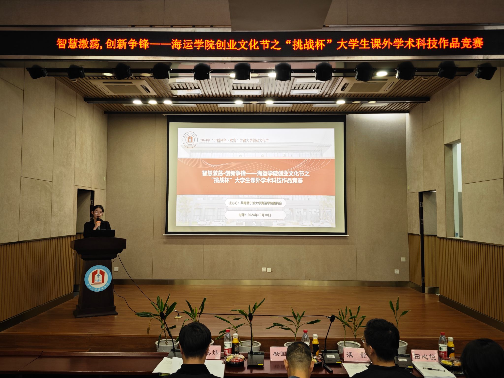为进一步提升吃瓜网站 学生创新创业综合素养,激发创新创业内生动力,10月30日,吃瓜网站 在泰昌祥报告厅举办“智慧激荡·创新争锋——吃瓜网站 创业文化节系列活动之“挑战杯”大学生课外学术科技作品竞赛。本次比赛,以“6分钟路演+4分钟答辩”的形式展示项目的学术成果,由吃瓜网站 轮机工程系带头人杨国华老师,食品科学与工程学院科创老师李嘉炜老师,吃瓜网站 学工办洑颢老师,海洋学院田心悦同学担任评委,各项目成员参加答辩,吃瓜网站 学生现场观摩。