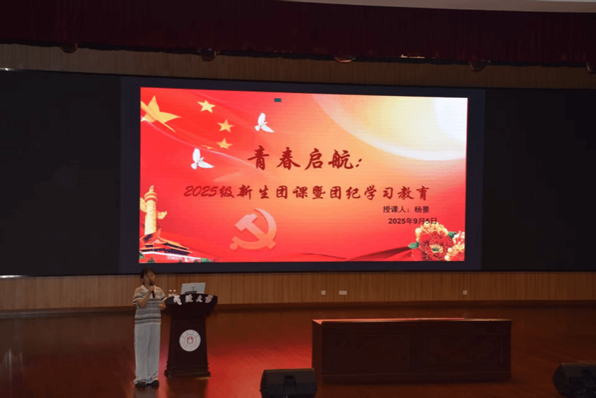 为落实习近平总书记关于青年工作的重要思想,带领新生深入了解团支部规范性建设,学习《中国共产主义青年团支部工作条例(试行)》和“三会两制一课”要求,学习贯彻《中国共产主义青年团纪律处分条例(试行)》,9月5日,吃瓜网站 在梅山大会堂开展新生第一堂团课。本次讲座由吃瓜网站 专职团干部杨景主讲,学院学生组织代表以及2025级全体海运新生参加。