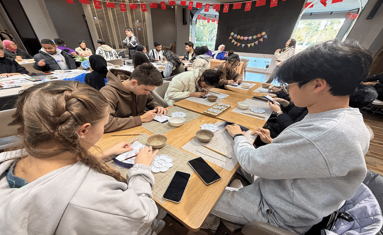 为丰富国际学生课余文化生活,缓解学业压力,并深度体验中华传统文化的博大精深,11月19日,在本部校区温馨雅致的校友之家,举办了一场别开生面的“敦煌岩绘”心理解压活动。本次活动由学院和医学部联合举办,吸引了来自30余名国际学生积极参与。