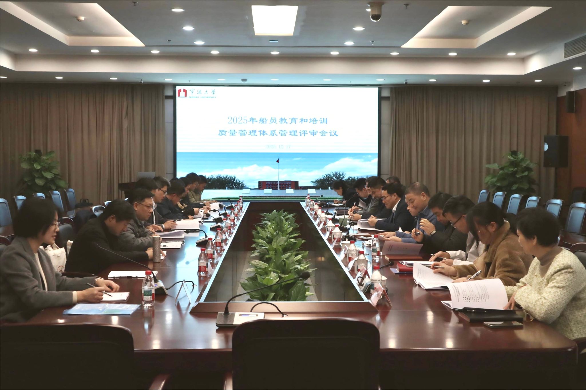 12月17日下午,学校在安中楼碧华厅召开2025年船员教育和培训质量管理体系管理评审会,学校质量管理体系最高管理者、校长蔡荣根院士,管理者代表、副校长李伟平出席。会议由质管办主任周星宇主持。