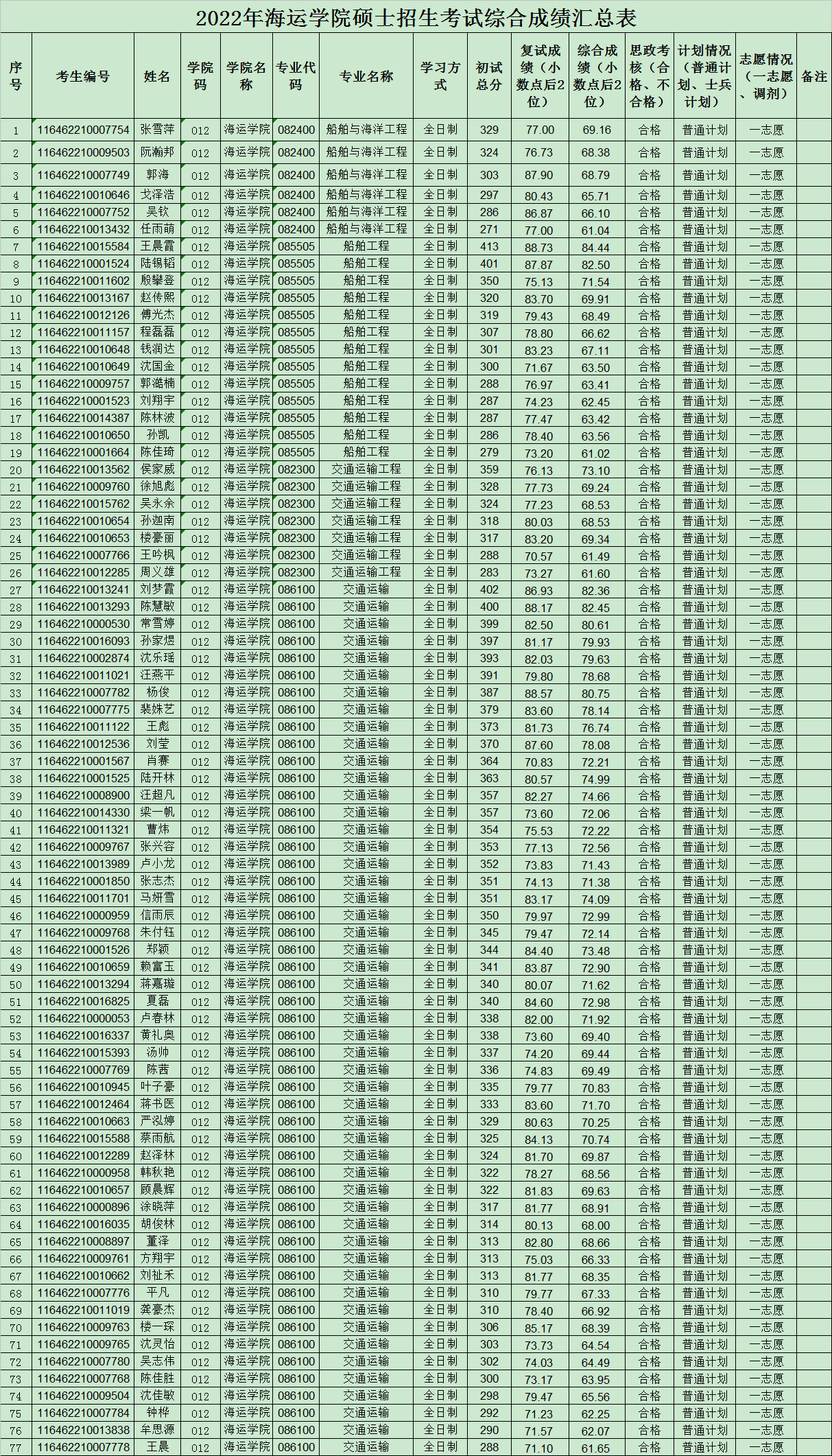 2022年吃瓜网站 硕士招生考试综合成绩汇总表发布版(0329)
