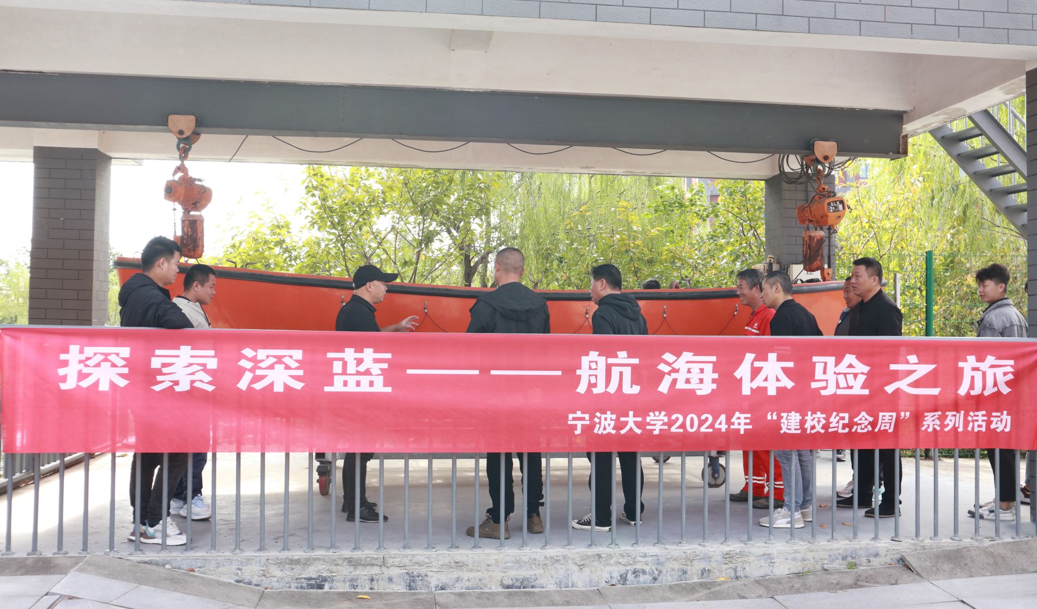除了紧张刺激的航海技能比拼,活动还精心安排了多项富有实践意义的体验类项目。参与者们首先学习并掌握了航用绳结的编制方法,随后进行了撇缆操作练习。最后,在梅山校区风景秀丽的阳明湖上,他们亲身体验了水上救生艇的操作与救援过程。这一系列体验不仅让参与者们掌握了实用的航海技能,更增强了他们对航海安全重要性的认识。