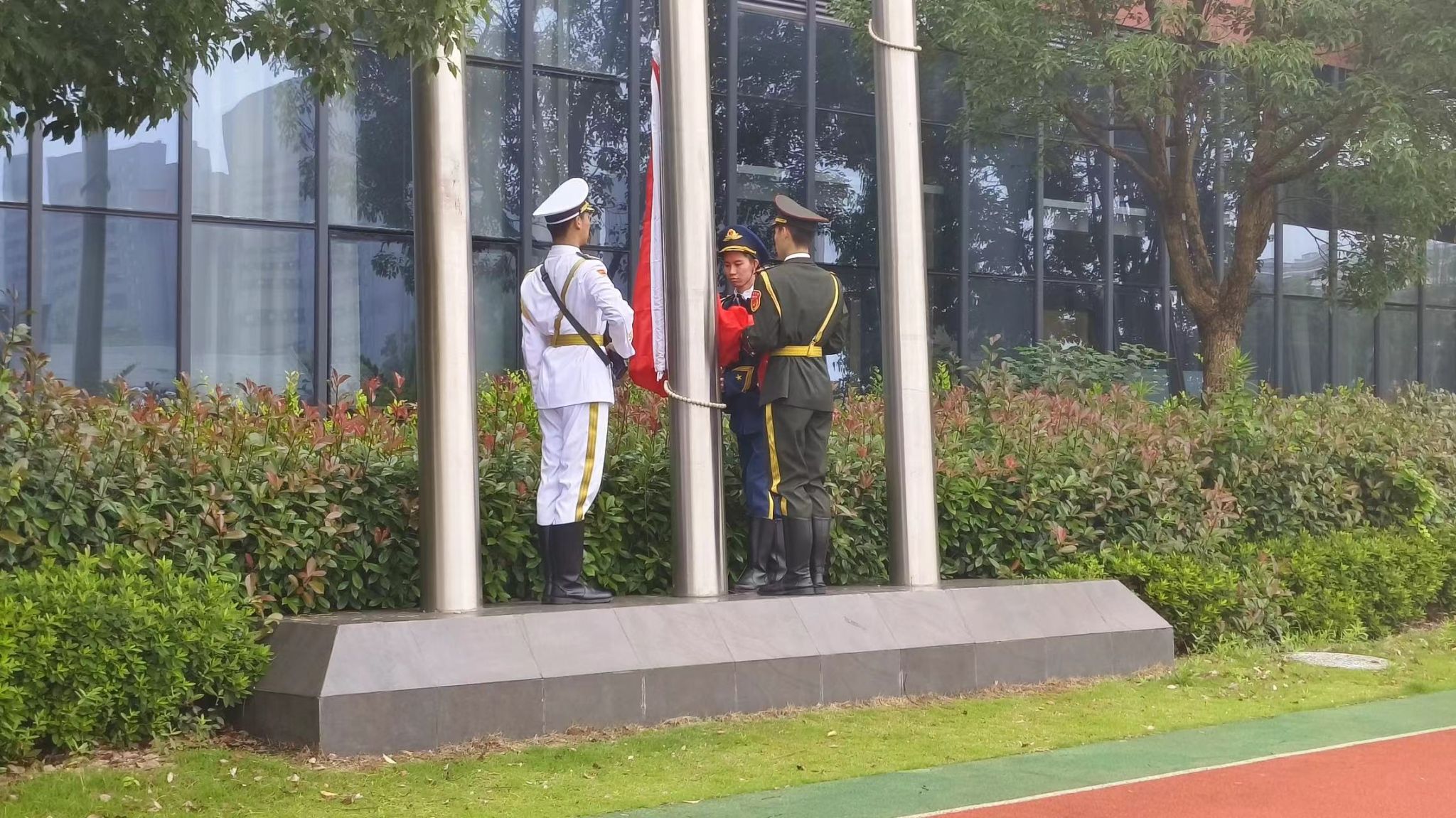 6月25日清晨,学院半军事化管理大队全体学员身着整齐的制服,列队站立,精神抖擞。随着嘹亮的国歌响起,国旗护卫队迈着坚定的步伐,护送着五星红旗走向升旗台。在蔚蓝的天空下,鲜艳的五星红旗冉冉升起,迎风飘扬,以此庆祝第十四个“世界海员日”。学员们目视国旗,行注目礼,共同见证了这一庄严的时刻。